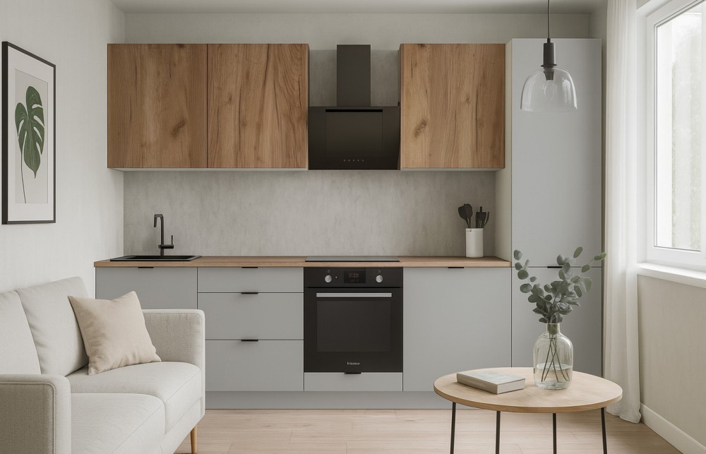 Кухонный гарнитур Микс топ — стильный и функциональный комплект для кухни, сочетающий практичность и комфорт в использовании. Линейное исполнение дела..